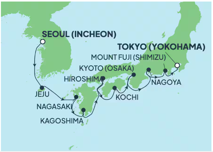 -8 days on board NCL Jade from Tokyo (Yokohama) through to Seoul, South Korea